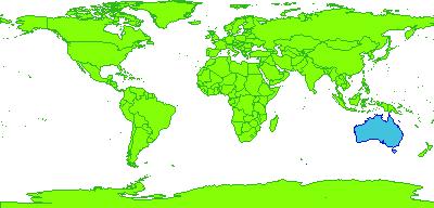 import java.awt.* import java.awt.image.* import javax.imageio.* import org.geotools.data.shapefile.* import org.geotools.factory.* import org.geotools.filter.* import org.geotools.map.* import org.geotools.renderer.lite.* import org.geotools.styling.* url = new URL("file://C:/share/geotools/world.shp") shapefile = new ShapefileDataStore(url) fs = shapefile.getFeatureSource() schema = fs.getSchema() crs = schema.getGeometryDescriptor().getCoordinateReferenceSystem() map = new DefaultMapContext([] as MapLayer[], crs) ff = FilterFactoryFinder.createFilterFactory() sf = CommonFactoryFinder.getStyleFactory() // ポリゴンの線の色1 stroke1 = sf.createStroke( ff.literal(new Color(10, 20, 207)), ff.literal(1) ) // ポリゴンの線の色2 stroke2 = sf.createStroke( ff.literal(new Color(47, 184, 27)), ff.literal(1) ) // ポリゴンの塗りつぶし色1 fill1 = sf.createFill( ff.literal(new Color(65, 195, 224)) ) // ポリゴンの塗りつぶし色2 fill2 = sf.createFill( ff.literal(new Color(133, 255, 7)) ) sym1 = sf.createPolygonSymbolizer(stroke1, fill1, null) sym2 = sf.createPolygonSymbolizer(stroke2, fill2, null) // フィルタを作成 filter = ff.createCompareFilter(FilterType.COMPARE_EQUALS) filter.addLeftValue(ff.createAttributeExpression("NAME")) filter.addRightValue(ff.createLiteralExpression("AUSTRALIA")) // フィルタに一致する場合のルールを作成 rule1 = sf.createRule() rule1.symbolizers().add(sym1) rule1.setFilter(filter) rule2 = sf.createRule() rule2.symbolizers().add(sym2) rule2.setElseFilter(true) fts = sf.createFeatureTypeStyle([rule1, rule2] as Rule[]) style = sf.createStyle() style.featureTypeStyles().add(fts) map.addLayer(new FeatureLayer(fs, style)) // レンダリング renderer = new StreamingRenderer() renderer.setContext(map) width = 400 bounds = map.getMaxBounds() rect = new Rectangle(0, 0, width, (int)(width * bounds.getHeight() / bounds.getWidth())) image = new BufferedImage((int)rect.width, (int)rect.height, BufferedImage.TYPE_INT_RGB) gr = image.createGraphics() gr.setPaint(Color.WHITE) gr.fill(rect) renderer.paint(gr, rect, bounds) ImageIO.write(image, "jpeg", new File("fill_with_rule.jpg"))出力画像